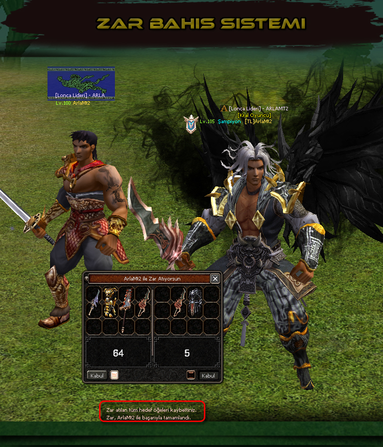 ArlaMt2 Zar Bahis Sistemi ile oyuncular, ticaret ekranına koydukları itemleri bahise koyabilirler. Yüksek zar atan oyuncu tüm eşyaları kazanır. Bu sistem tamamen şansa dayalıdır ve heyecanlı bir oyun deneyimi sunar.